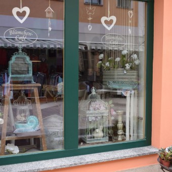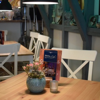 Wir sind ein kleines Café mit 30 Sitzplätzen, bieten Bio-Kaffee, Bio-Tee und hausgemachten Kuchen. Auch gibt es schöne Deko für drinnen und draußen.