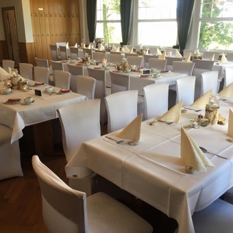 Der große Saal eignet sich hervorragend für Feierlichkeiten jeder Art.