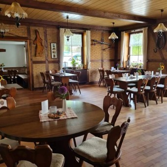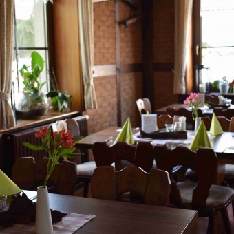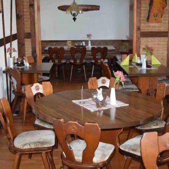 Wir bieten unseren Gästen Hausspezialitäten aus eigener Schlachtung, Thüringer Küche und hausbackenen Kuchen. Ausreichend Parkplatz finden Sie direkt am Haus.