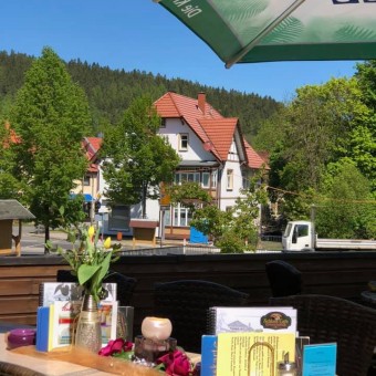 Sie finden unser Café im Zentrum von Georgenthal am Schlossplatz, direkt an der großen Ampelkreuzung.
