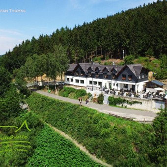 Mitten im südlichen Thüringer Wald idyllisch gelegen, bieten wir täglich ab 11.00 Uhr eine moderne, regionale frische Küche in traumhaftem Ambiente. Natürlich bieten wir an Sonntagen und Feiertagen zum Mittagstisch original Thüringer Klöße an mit immer wechselnden Bräten, wie Sauerbraten, Roulade, Rehbraten, Gänsebrust oder auch eine typische Rauensteiner "Schwämmlesbrüh'".