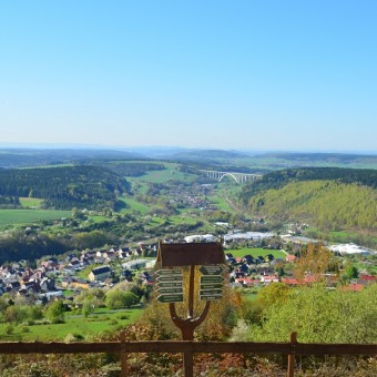 Von Kronach kommend die B89 über Sonneberg Richtung Eisfeld in Grümpen an der Ampelkreuzung nach rechts Richtung Rauenstein abbiegen.