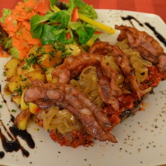 Rostbrätel / Röstzwiebeln / hausgem. Bratwurst / dazu Bratkartoffeln