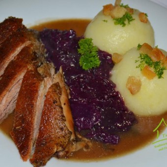 natürlich traditionell mit Thüringer Klößen und Bräten.