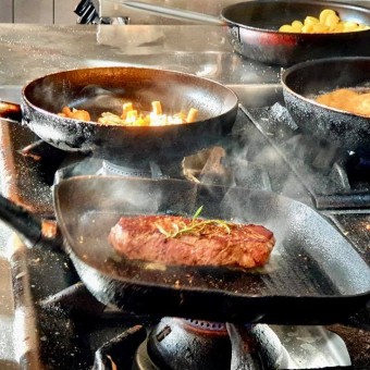 Seit Generationen macht es uns Freude, Gäste zu bewirten. Nehmen Sie Platz im historischen Restaurant "Napoleon" und genießen Sie unter zeitgenössischen Wandmalereien "Napoleons Gefechtspfanne".